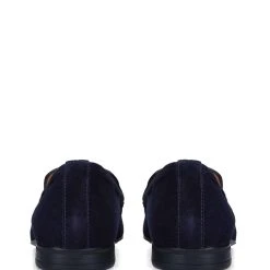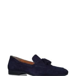 The navy Blake loafers are a formal style with softly rounded toe and tassel detail to tone them down. The ankle is structured whilst the heel is slightly lifted in black for comfort.