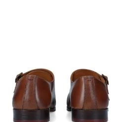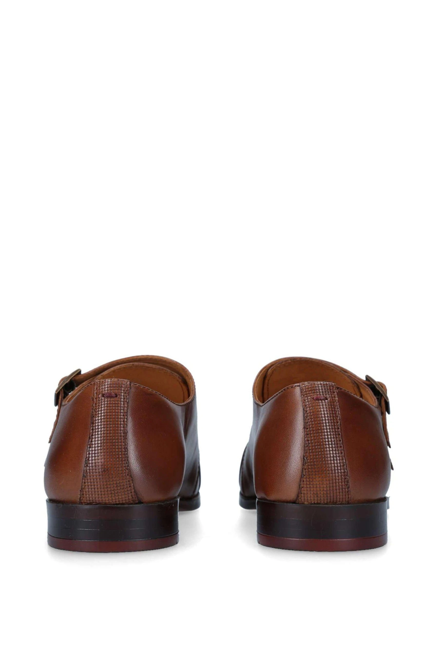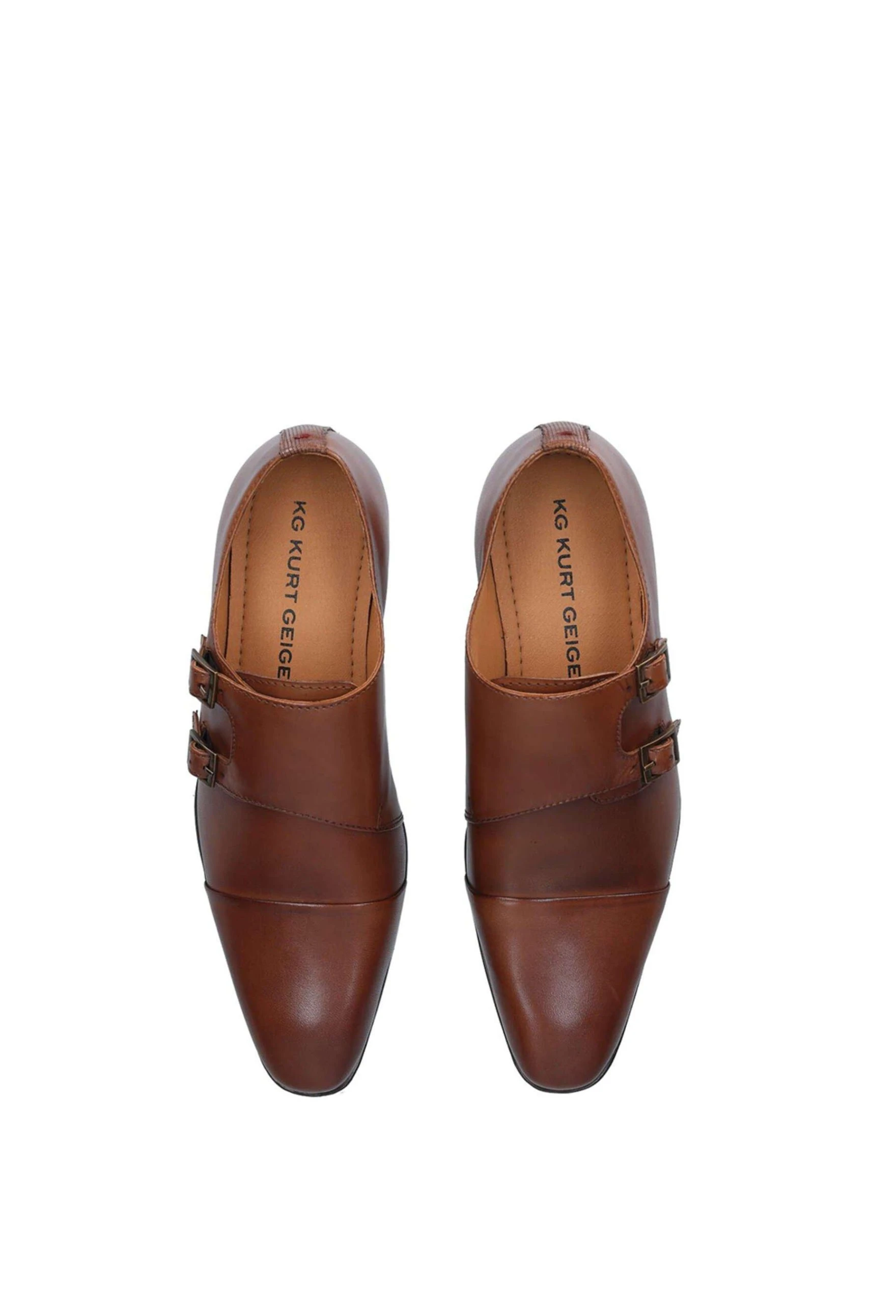 Elevate your attire with the COLLINS shoes from KG Kurt Geiger. The smooth tan leather upper is complimented by an adjustable wide strap across the shoe, with bronze buckles and a rounded toe. The back of the shoe uses a textured panel with a small stitch which all sits on a low, structured heel. Â