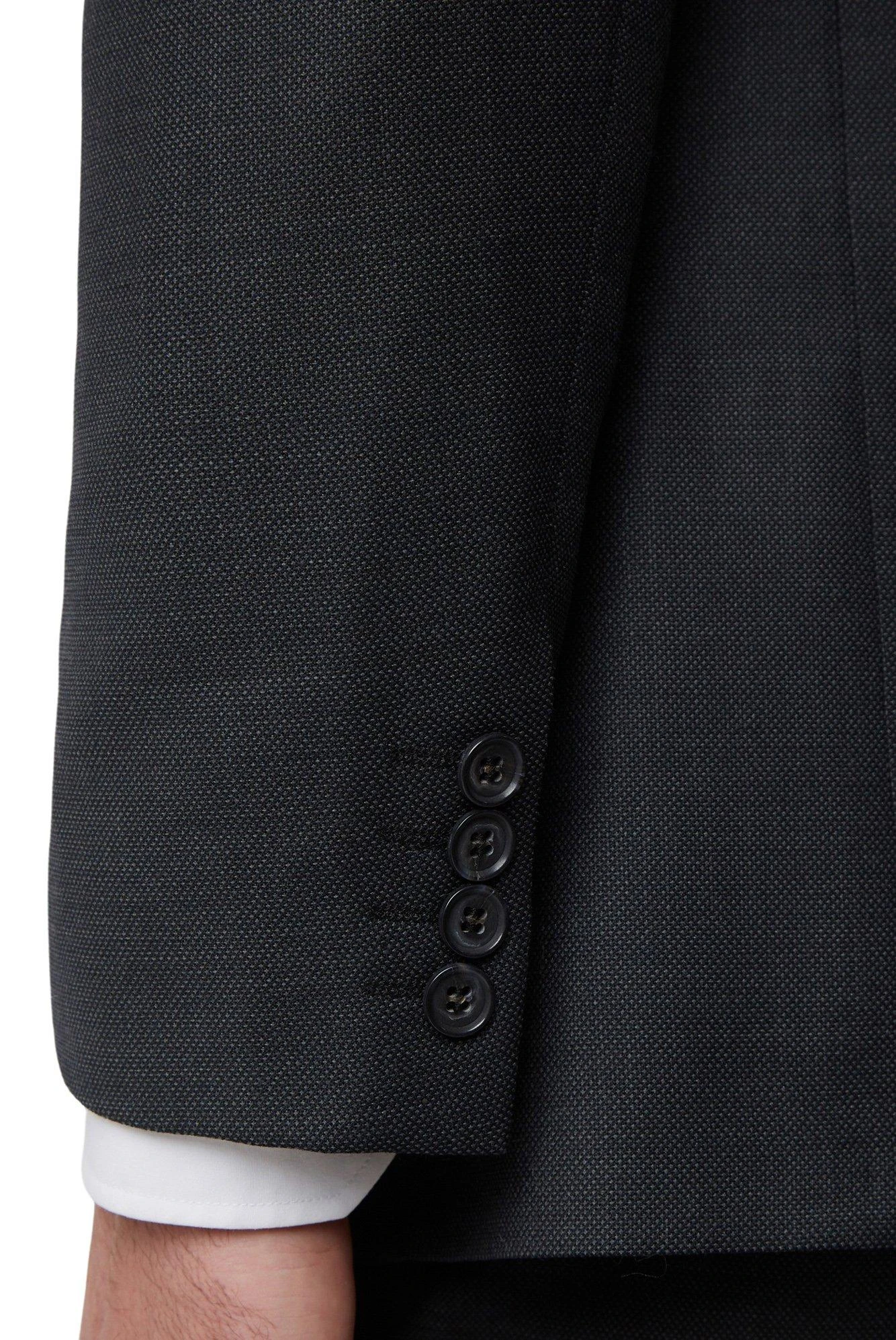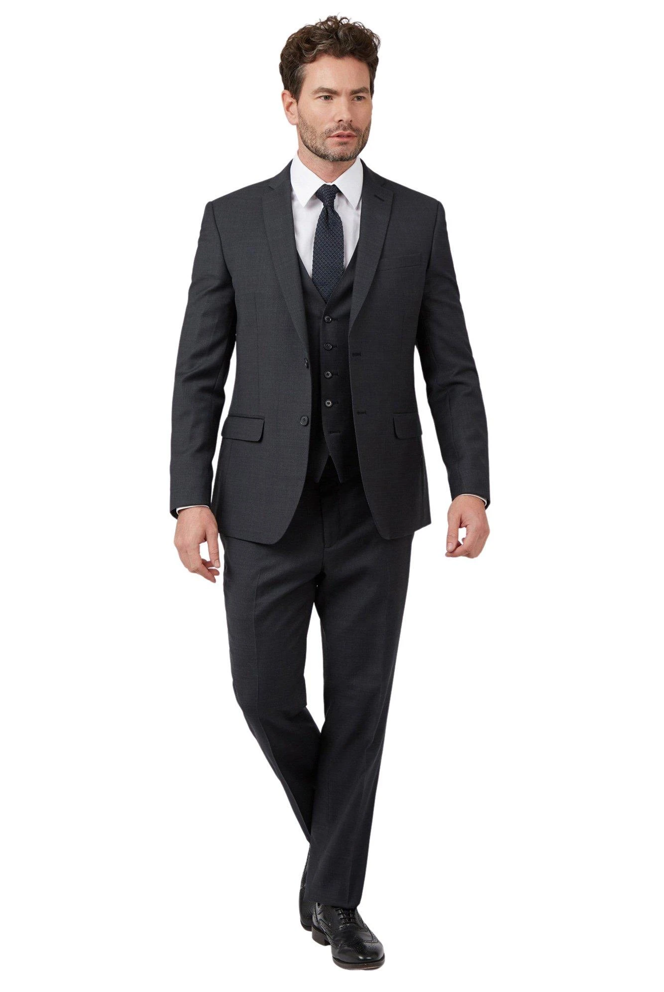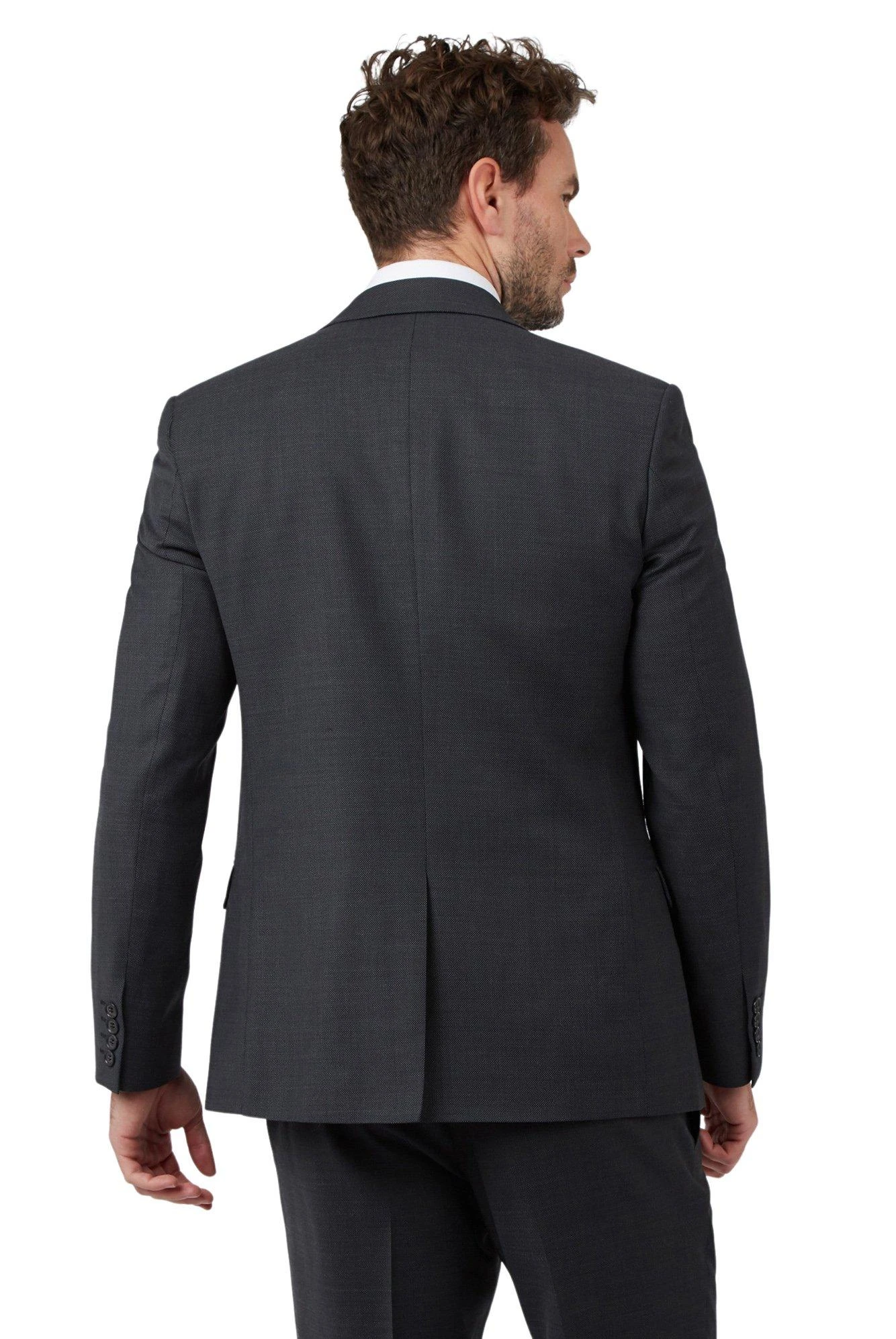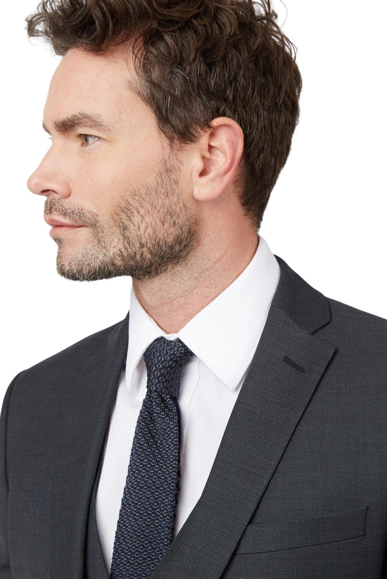 Birdseye Tailored Fit Suit Jacket by Racing Green. A versatile men’s suit jacket from Racing Green, constructed in a Birdseye wool blend fabric that’s ideal for everything from the office to formal dress codes. Designed in a tailored fit with two-button fastening, 4 button cuff, notch lapels and a centre vent this jacket is a classic Racing Green design with a focus on sharp styling, quality and design. Complete your look by styling with the matching trousers and waistcoat for a sharp, classic formal look.
