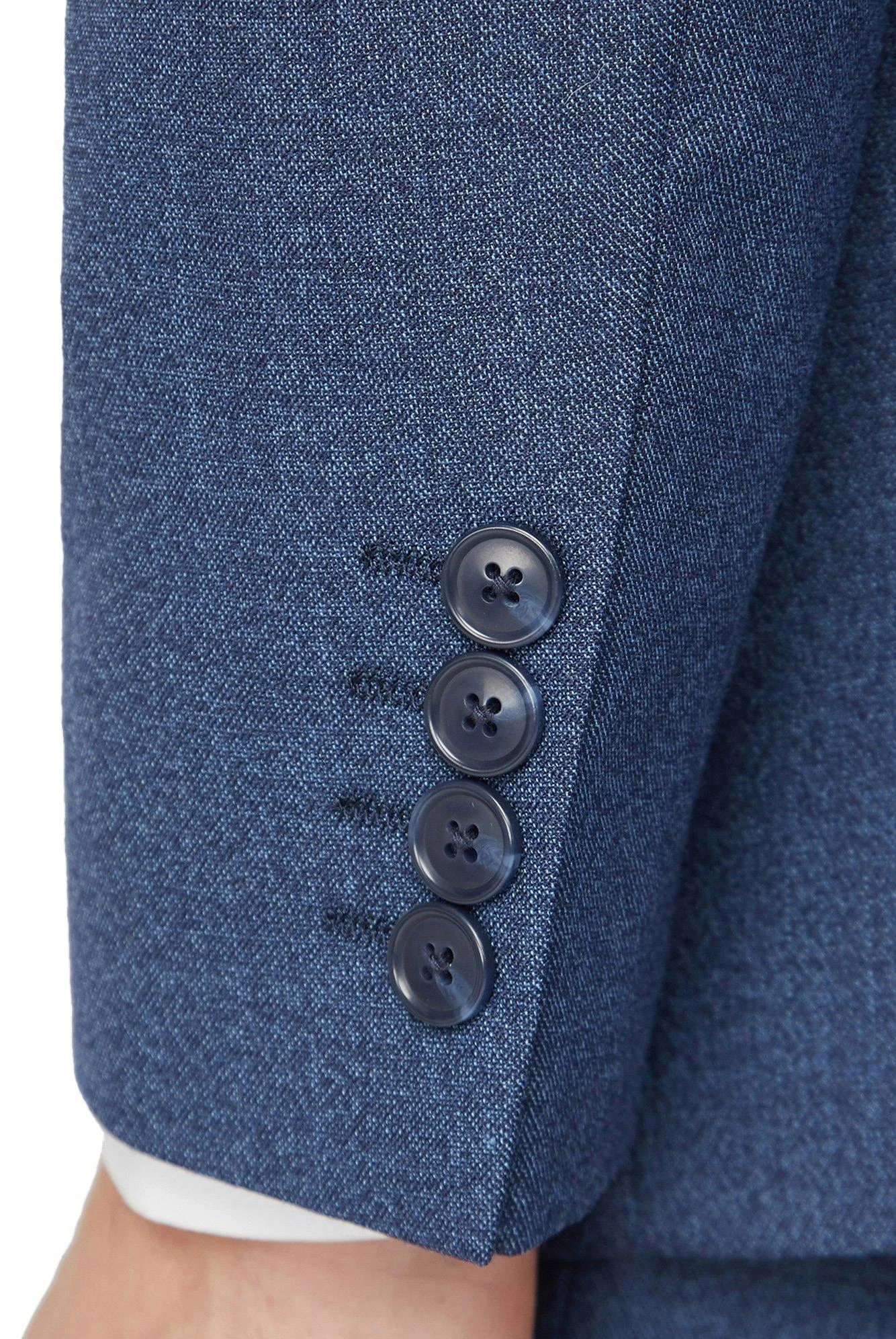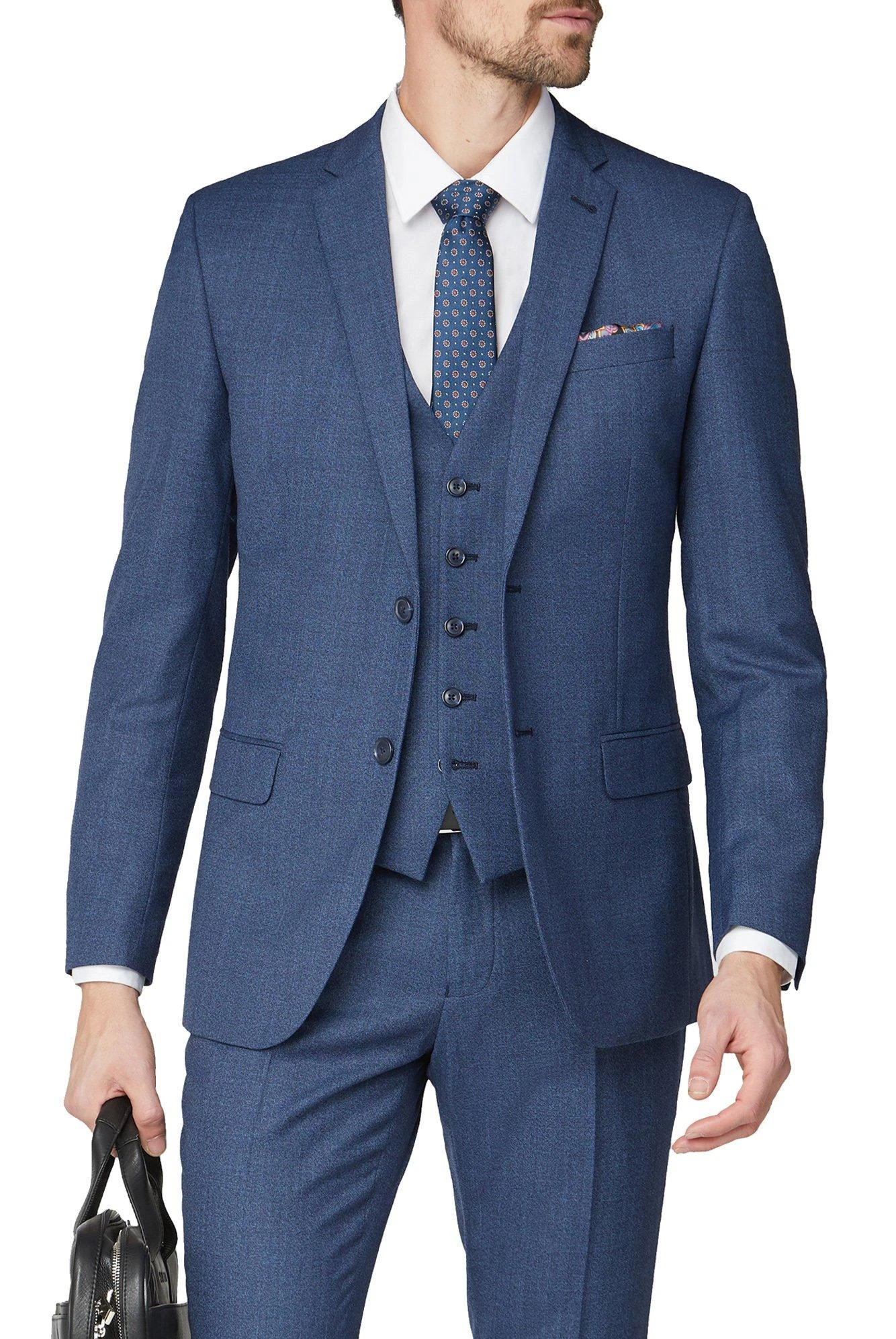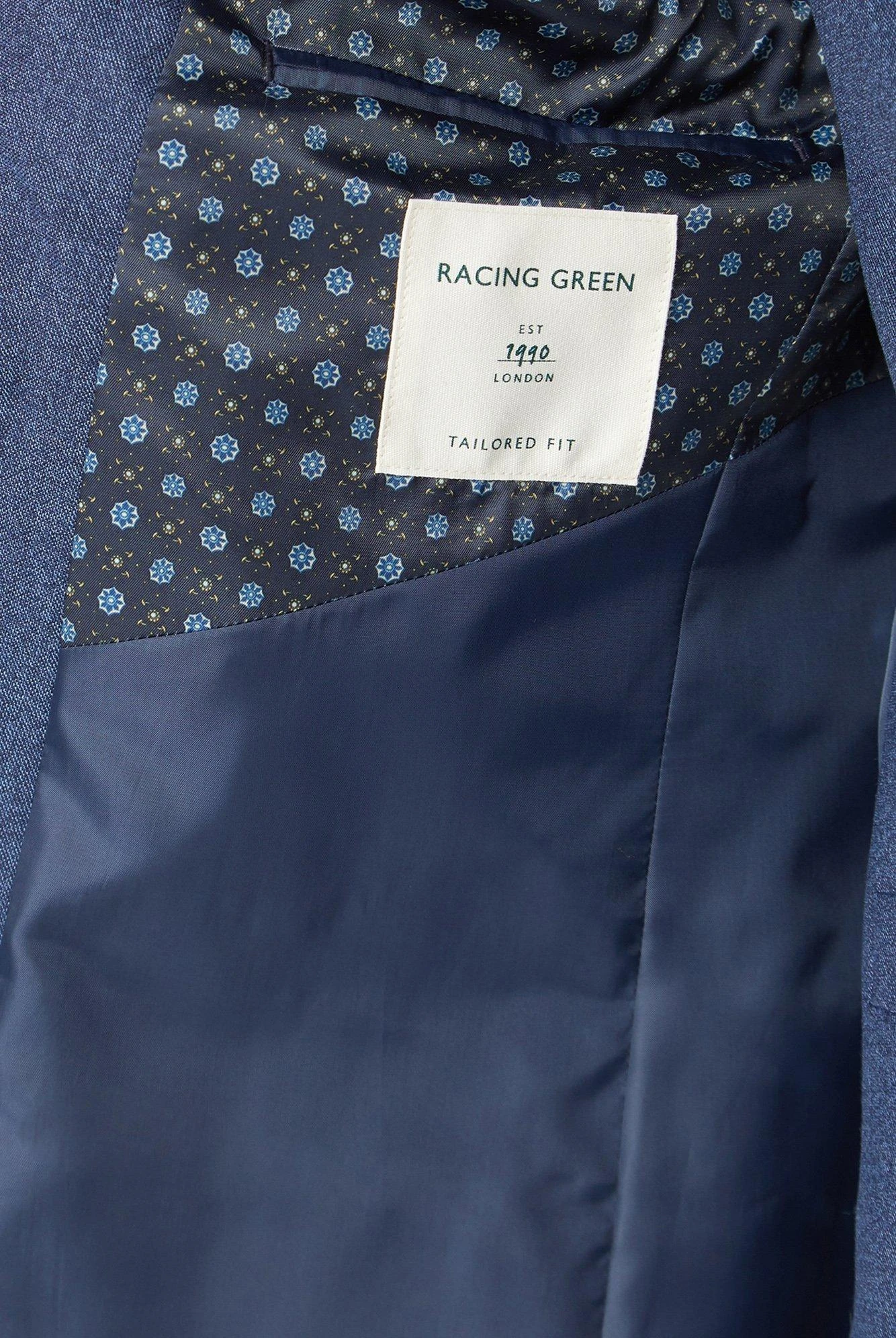 The Racing Green Bright Blue Texture suit jacket is an everyday classic, presented with an understated style, its the perfect timeless addition to your wardrobe. Cut to the established Racing Green tailored fit to ensure a classic silhouette and designed with a notch lapel and 4 button cuffs. Wear with a crisp white shirt and some brogues to complete your look.